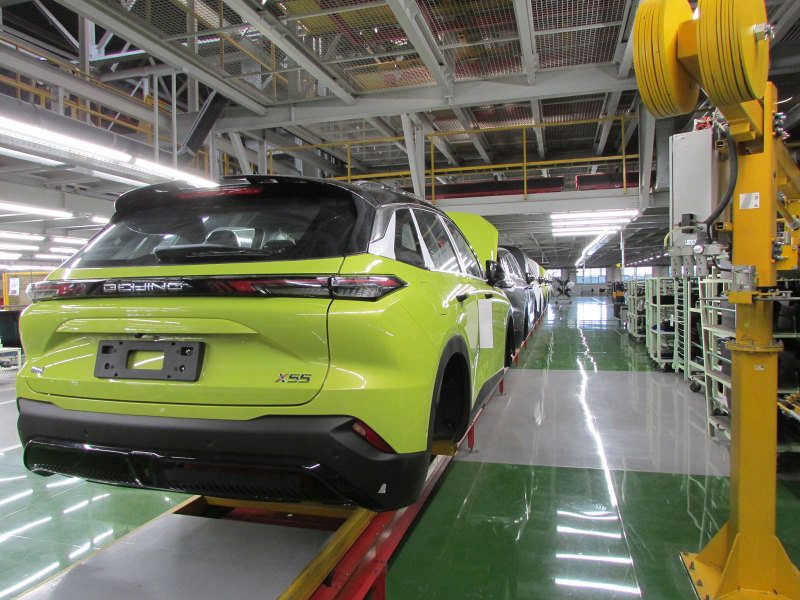 Учитывая оснащённость BAIC X55 большим количеством электронных систем, интеллектуальными ассистентами последнего поколения, на конвейерной линии было установлено дополнительное оборудование для первичного программирования блоков управления и всех электронных систем автомобиля.