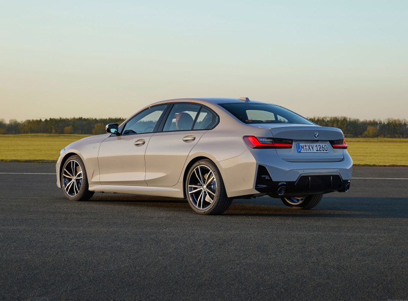 Внешне посвежевшие BMW 3 Series возможно узнать по более широкой решётке радиатора, головная оптика теперь стала "цельная", на неё не "налезает" элемент бампера. Сами бамперы также заметно изменились, передний получил новый, более "агрессивный" дизайн.