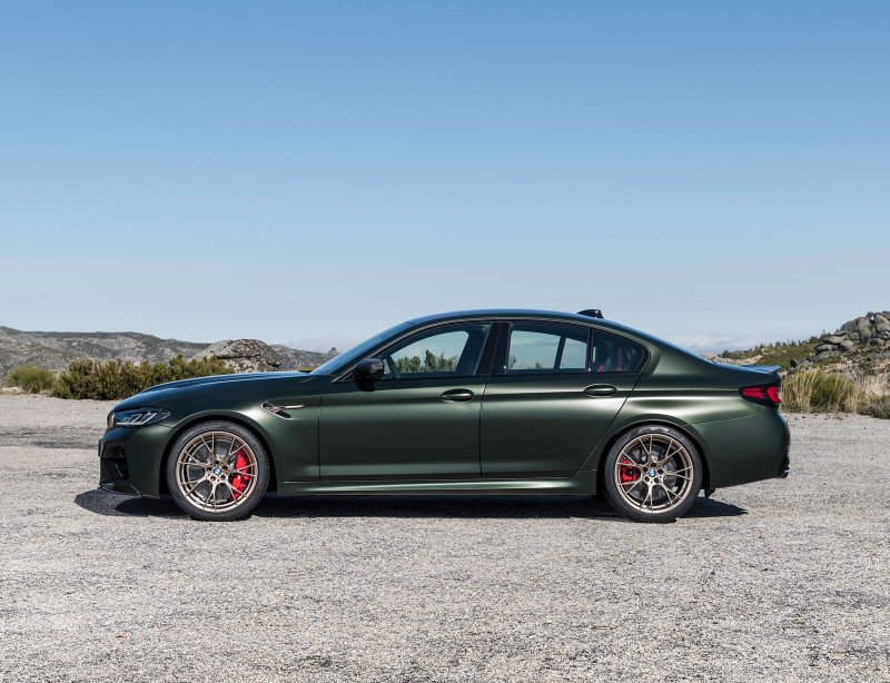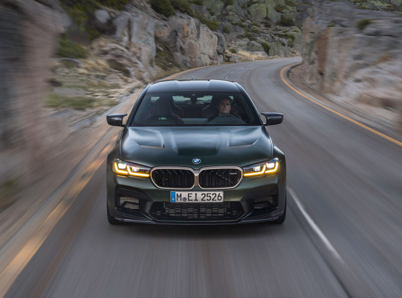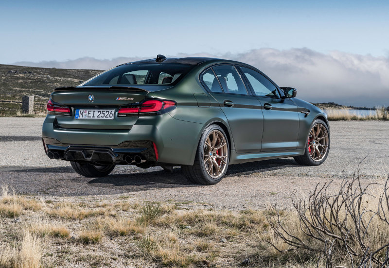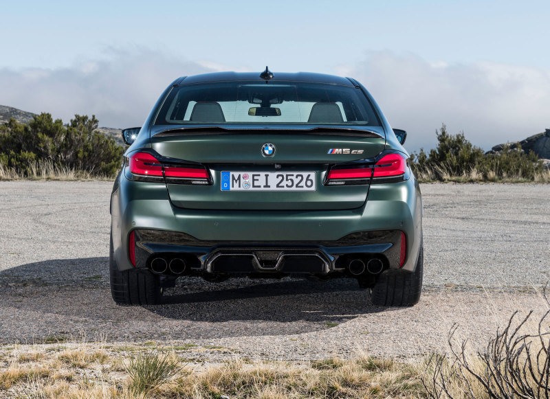 Внешне новый BMW M5 CS выделяется ходовыми огнями жёлтого цвета, что является намёком на родство с гоночными автомобилями, также у версий другой обвес кузова.