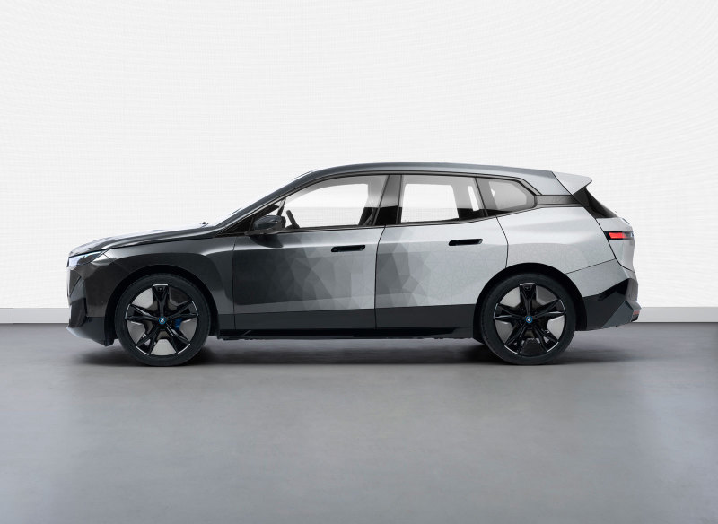 Концептуальный кроссовер BMW iX Flow создан на базе электромобиля BMW iX. Особенностью машины является способность менять цвет кузова, окраска меняется с белого до тёмно-серого.