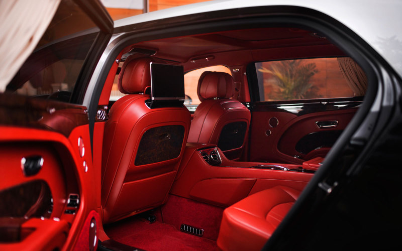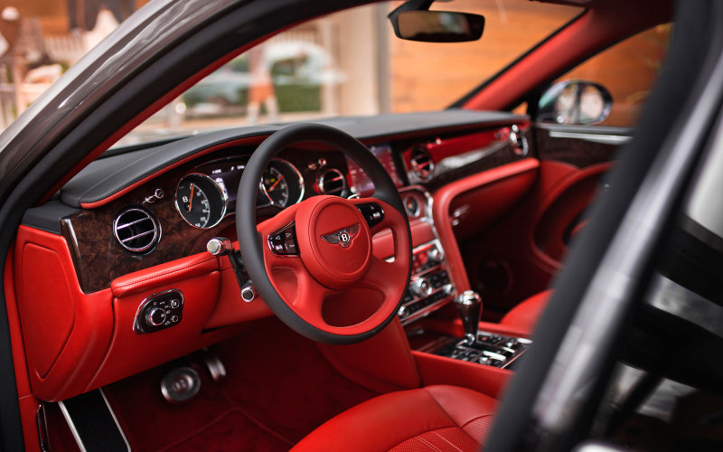 В отделке салона Bentley Mulsanne W.O. Edition от Mulliner использована высококачественная кожа тончайшей выделки Fireglow Heritage и Fireglow с эффектом патины, как у винтажных автомобилей. Дополнительные цветовые акценты в интерьере расставлены с помощью контрастных вставок из кожи Beluga и прострочки в тон кожи. Приборную панель, обод рулевого колеса и другие поверхности салона украшают вставки из шпона Dark Stain Burr Walnut. Атмосферу поддерживают коврики из овечьей шерсти Fireglow, защитные шторки и развлекательная система для задней части салона.