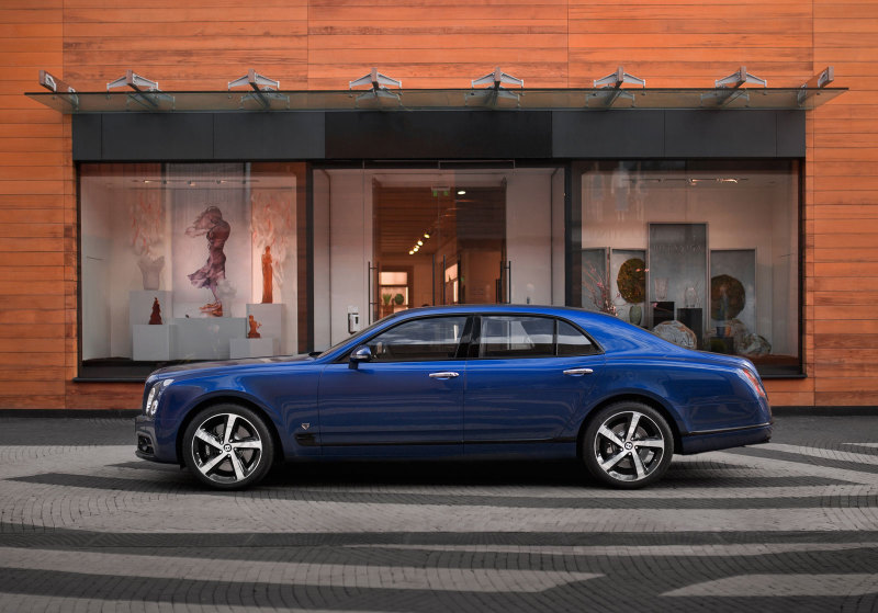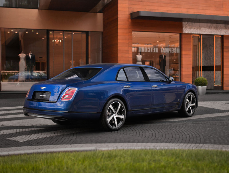Всего было выпущено 30 седанов Bentley Mulsanne 6.75 Edition от ателье Mulliner, один из которых был поставлен на российский рынок. Этот автомобиль окрашен в синий цвет Moroccan Blue.
