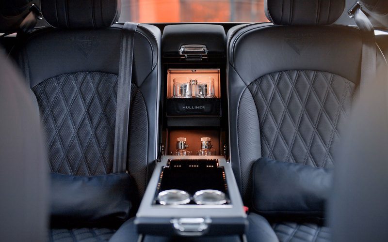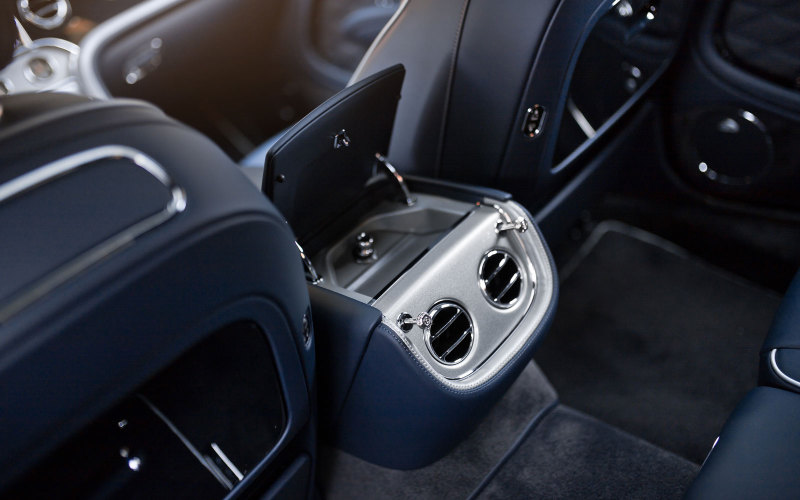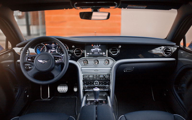 Салон Bentley Mulsanne 6.75 Edition дополнен серебряными акцентами – на окантовках сидений, кожаной вставке, обрамляющей центральную консоль, окантовках напольных ковриков и дверных вставках, в перфорированной обивке сидений.