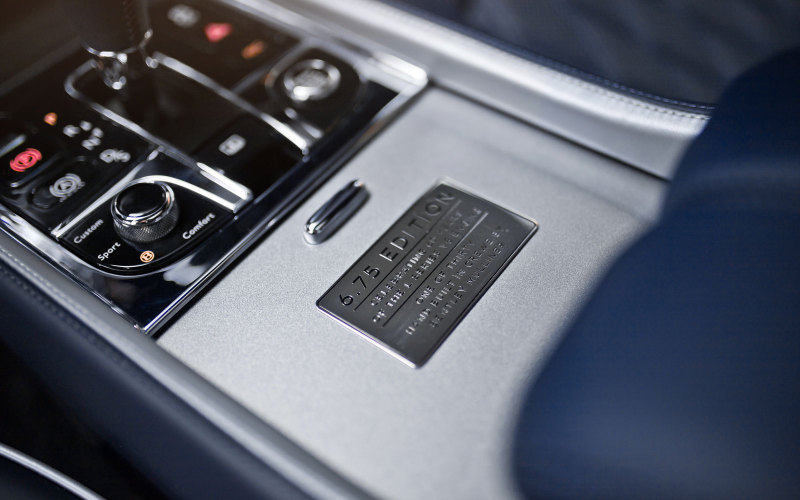 В интерьере Bentley Mulsanne 6.75 Edition на месте классических органов управления вентиляцией появились элементы с наконечниками в виде миниатюрной пробки маслозаливной горловины двигателя. Тема лимитированной версии продолжается в прострочке сидений, хромированных эмблемах экстерьера и в моторном отсеке.