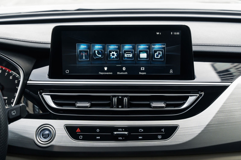 Основой интерьера кроссовера является широкоформатный сенсорный дисплей управления мультимедийным развлекательным центром с диагональю 10,25 дюймов. Имеются акустическая система Hi-End с 8 динамиками, 2-х зонный климат-контролем, комплекс электронных помощников, интеллектуальный SMART-ключ, камера заднего вида с дистанционно-динамической разметкой.