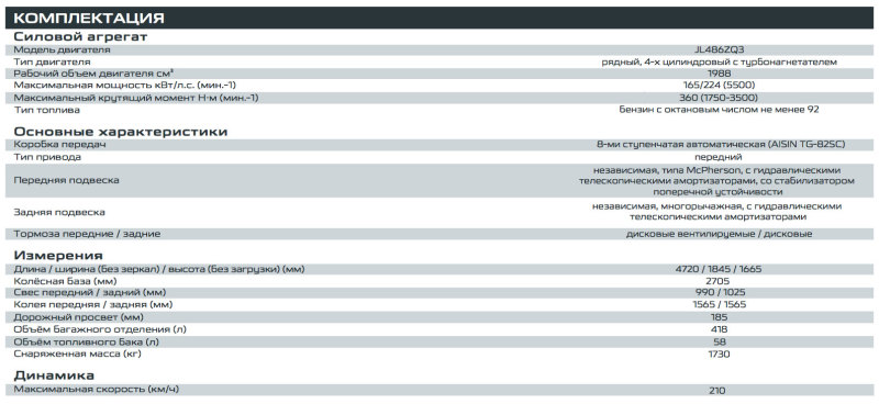 Changan CS85 Coupe, собранный в Китае, предлагается с двухлитровым бензиновым турбомотором мощностью 224 л.с., в паре с восьмиступенчатым автоматом. Привод может быть только передний, полноприводной трансмиссии не предусмотрено.