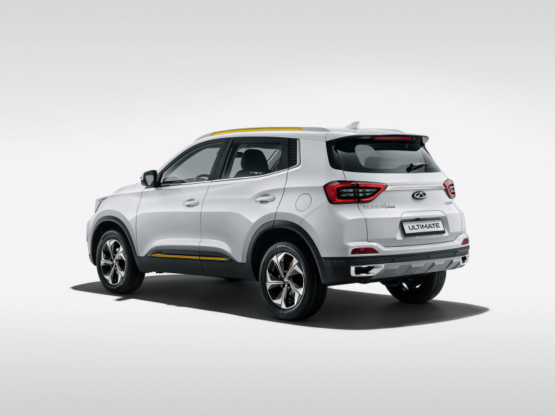 Chery Tiggo 4 Pro Ultimate доступен на российском рынке c чёрным кожаным салоном. На бампере, боковых молдингах и колёсных дисках присутствуют акцентные детали жёлтого цвета.
