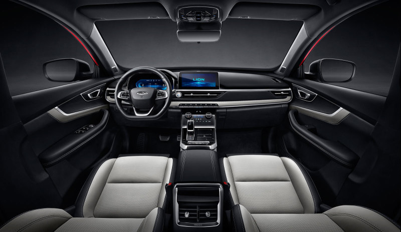 В салоне "Чери Тигго 7 Про" имеется цифровая приборная панель, дисплей информационно-развлекательного комплекса, сенсорный блок управления климатом.
