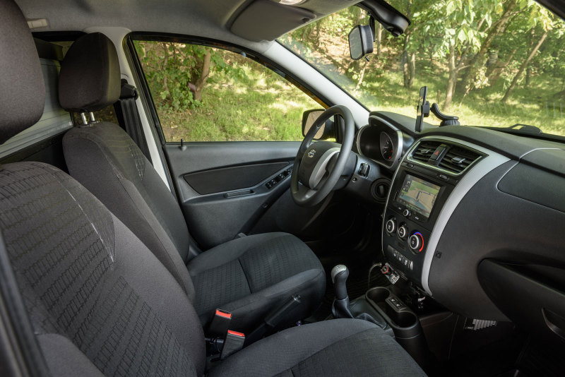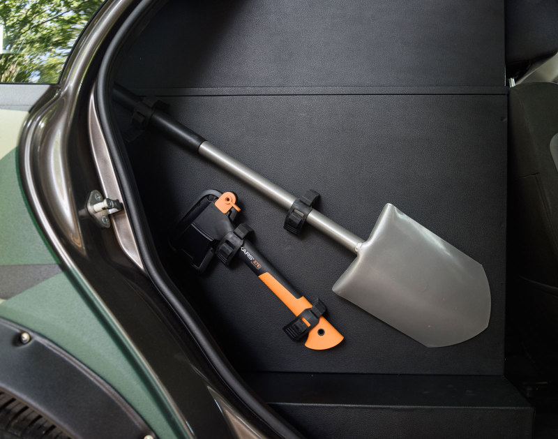 Багажный отсек получил дополнительное освещение в стенке задней двери. В комплектацию авто входят рывковый и буксировочный тросы, шаклы, упакованные в специальную сумку, лопата и топор Fiskars, тент с боковыми стенками.