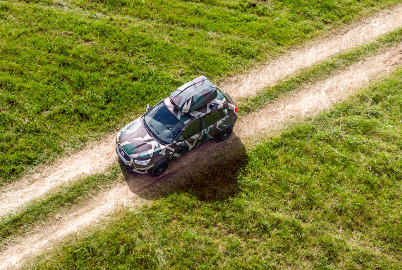 Кузов автомобиля окрашен в камуфляжный цвет и получил специальное матовое покрытие Raptor, стойкое к царапинам и сколам. Также автомобиль получил особый набор аксессуаров: дополнительная оптика, расширители арок, поперечины, дефлекторы, тонировку стёкол задних дверей и автомобильный бокс Thule объемом 330 литров.