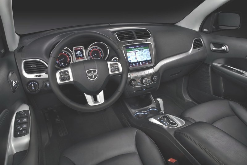 В салоне Dodge Journey появилась новая отделка кресел, мультимедийная система с сенсорным экраном, а также многофункциональное рулевое колесо.