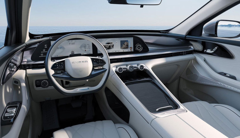 В интерьере Exeed Yaoguang центром притяжения является 24,6-дюймовый изогнутый экран, D-образное многофункциональное рулевое колесо, электронный переключатель передач и физические кнопки с огранкой в стиле алмаза. Аудиосистема Sony с 14 динамиками создает объемное звучание в любой точке салона. В интерьере использованы сиденья с отделкой перфорированной кожей наппа.