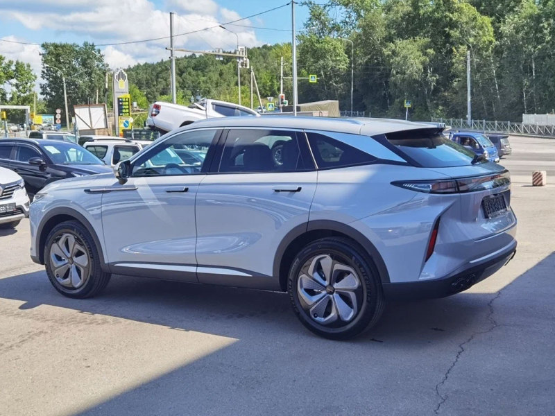 Купеобразный кроссовер Exeed RX длинной 4,78 метра отличается вертикальными полосками ходовых огней, оригинальным узором решётки радиатора и скрытыми наружными ручками дверей.