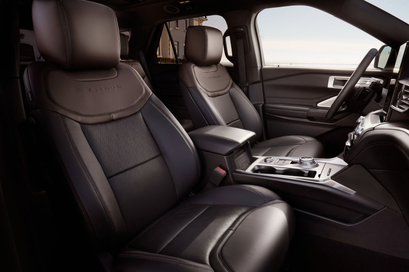 На домашнем рынке новый Ford Explorer будет продаваться в исполнениях XLT, Limited и Platinum. Базовая комплектация XLT включает мультимедийую систему с 8-дюймовым тачскрином и точкой доступа 4G LTE WiFi, электроприводом задней двери, комплексом Co-Pilot360, системой мониторинга "слепых" зон и контроля полосы движения, системой предотвращения фронтальных столкновений с функцией распознавания пешеходов, адаптивной головной оптикой. Для новинки предложат большой выбор дополнительный опций, среди которых "умный" помощник парковки и адаптивный круиз-контроль. В "базе" автомобиль имеет три ряда сидений и семь посадочных мест.