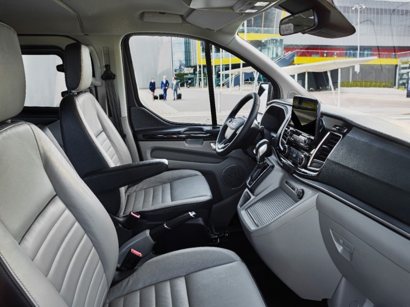 В топовой комплектации Tourneo Custom оснащается 6-ступенчатой АКПП SelectShift, отличающейся плавностью работы и отзывчивостью к действиям водителя, уникальной для сегмента задней пневмоподвеской, обеспечивающей комфортабельный ход и полный контроль над автомобилем под любой нагрузкой, и 17-дюймовыми легкосплавными колесами для улучшенной управляемости и более эффективного торможения.