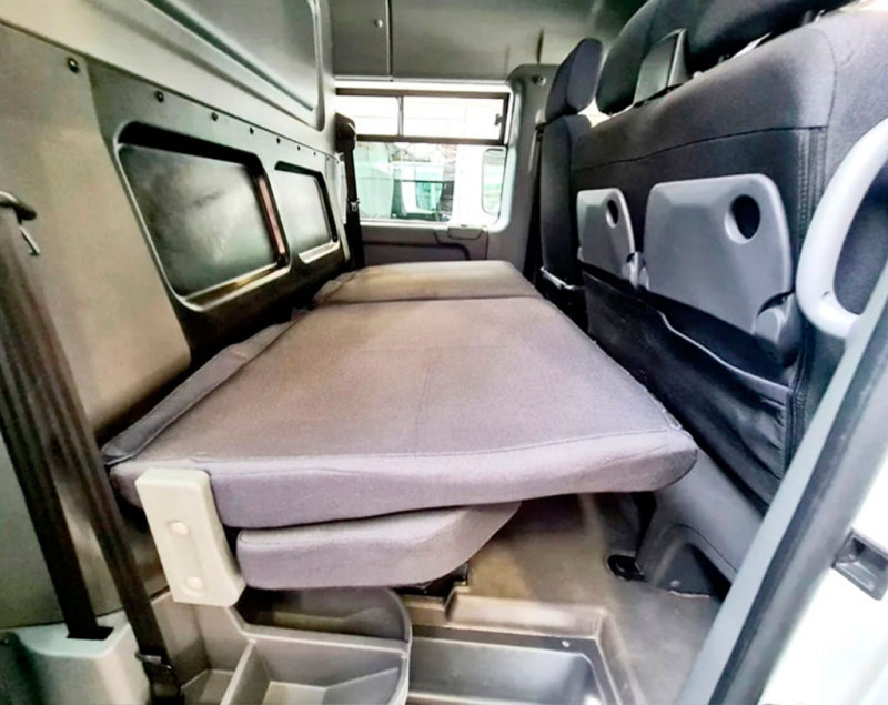 Второй ряд в кабине применяется от машин предыдущего поколения Next. Там высокие спинки сидений, они трансформируются в полноценное спальное место.