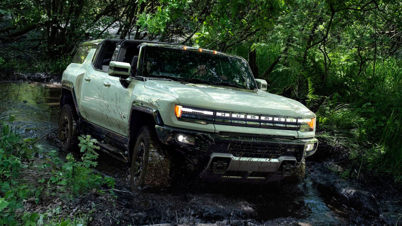 Более доступный GMC Hummer EV SUV с двумя электромоторами суммарной мощностью 634 л.с. с запасом хода в 400 км появится весной 2024 года по цене от 80.000 "вечно зелёных".