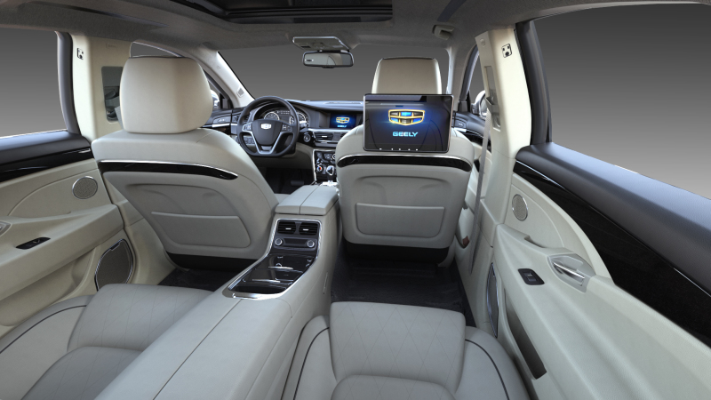 Главная особеннось Geely GC9 Individual — это салон, предназначенный для четырех пассажиров. Пассажиры заднего ряда получили два роскошных кресла с электрообогревом, отделанные благородной кожей Nappa. Кроме того им доступны: двухзонный климат-контроль, проекционный дисплей, мини-бар и мини-холодильник.