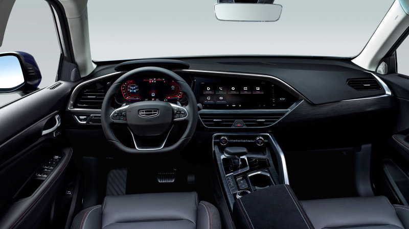 Geely Tugella в комплектации Flagship также имеет восемь цветов атмосферной подсветки салона, беспроводную зарядку для смартфонов, цифровую панель приборов и графический тачскрин-дисплей мультимедиа диагональю 12,3 дюйма, обученный синхронизироваться с мобильными устройствами. Комбинированные кресла из замши и кожи NAPPA спереди оснащены вентиляцией и имеют широкий диапазон электрорегулировок. В салоне имеются подстаканники с функцией обогрева и охлаждения, аудиосистема с восемью динамиками, панорамная крыша c люком и электропривод пятой двери, который также может открываться и закрываться движением ноги под задним бампером.