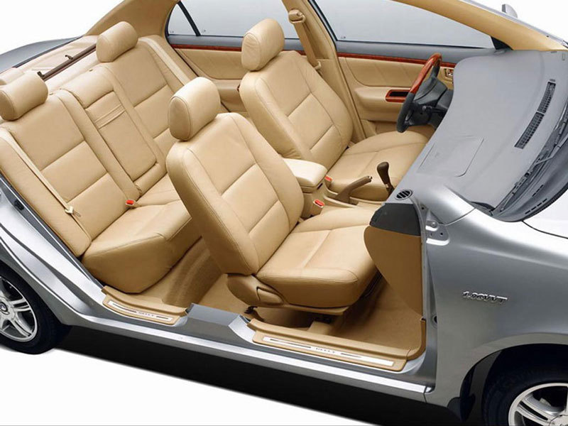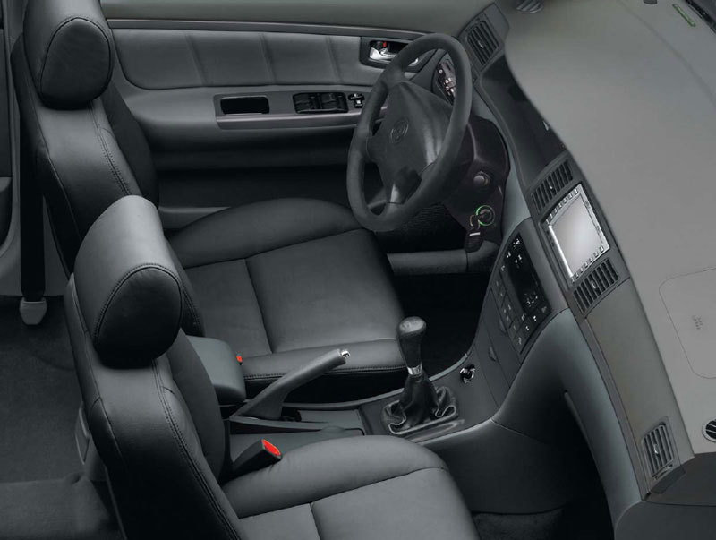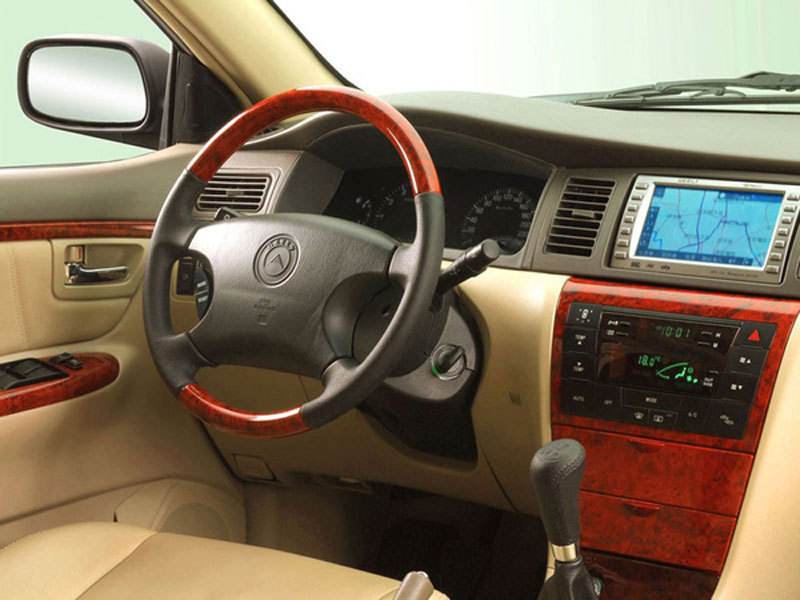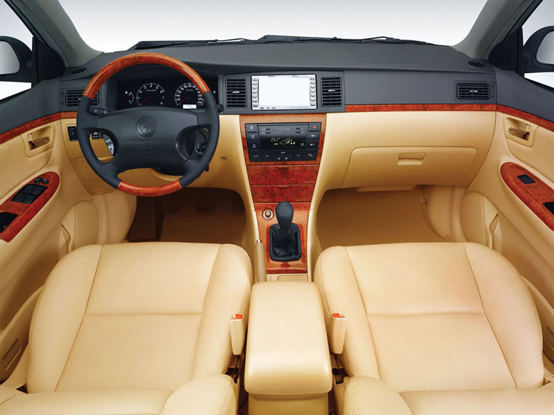 Интерьер «Джили Вижн» выполнен в классической компоновке и выглядит достаточно строго, не без претензий на уровень бизнес-класса и опять – таки во многом повторяет внутрисалонное устройство Toyota Corolla. Габариты у Vision: 4602 х 1725 х 1485 мм/, поэтому и салон достаточно просторен, хотя задняя его часть могла бы быть и шире. Кресла в салоне обтянуты светлой кожей (для российского покупателя автомобиль, однако, предлагается с салоном в отделке из темной кожи), а приборная панель выполнена из пластика и декоративных вставок под дерево или карбон. Водительское кресло можно отрегулировать по нескольким позициям, рулевая колонка имеет регулировку по углу вылета. И в целом водительское место организовано эргономично и достаточно комфортно: перед водителем удобный четырехспицевый руль, приборная панель с хорошо читаемыми циферблатами приборов, под рукой на центральной панели дефлекторы вентилятора и кнопки системы климат-контроля, тут же расположен и ЖК-дисплей (у топовых версий).