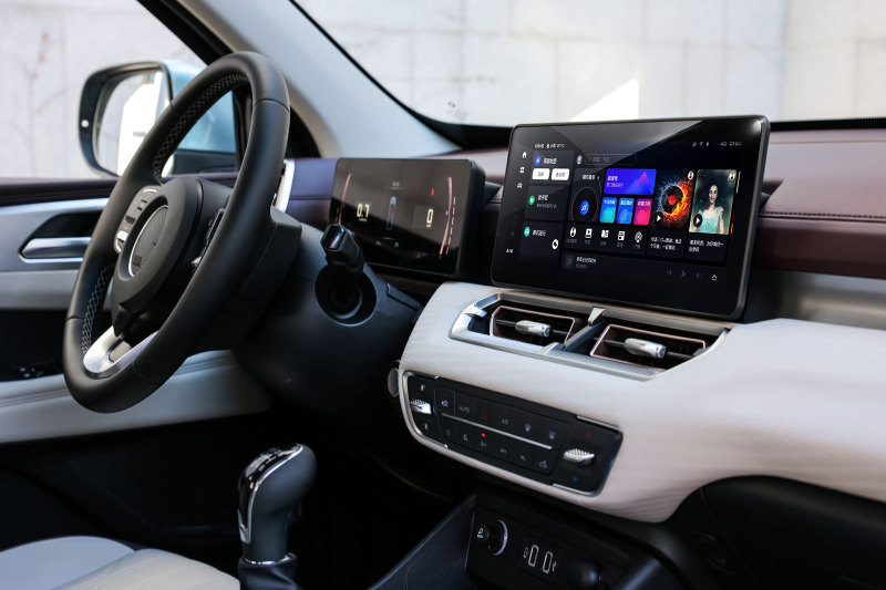 В салоне на передней панели расположены два "планшета", на одном из них выводится виртуальная комбинация приборов, на втором иноформация мультимедийной системы.