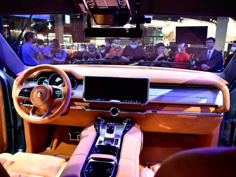 У Great Wall Tank 700 необычный салон, он рассчитан 4 места, при это задние места разделены. Для задних пассажиров предусмотрены дисплеи на спинках передних кресел, также дисплей установлен на подлокотнике. Перед водителем комбинация приборов расположена в виде трёх колодцев, по центру передней панели расположен большой дисплей. В отделке интерьера используется алькантара и алюминий.
