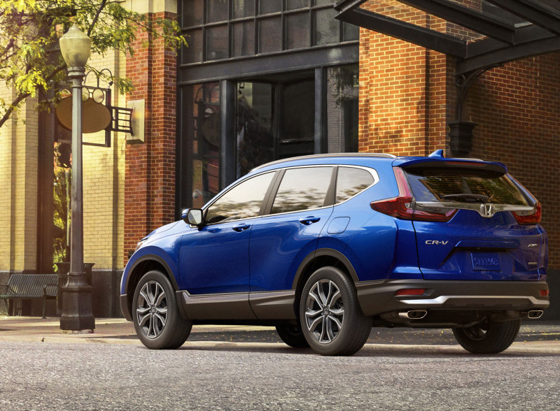 Пятое поколение Honda CR-V выпускается с 2016 года. Внешне рестайлинговый кроссовер CR-V 2020 получил более спортивные и агрессивные черты. Спереди появились широкие отверстия для противотуманных фар полностью интегрированы в бампер, а хромированные элементы теперь более ярко выражены, изменился дизайн колёсных дисков. В задней части кузова теперь новые фонари с затемнениями и хромированная линия под стеклом пятой двери.