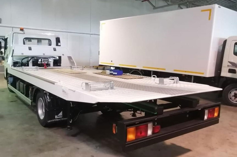 Полная масса автоэвакуатора 9500 кг. Модель оснащена 3,9-литровым двигателем D4GA (170 л.с. / 608 Нм), работающим в паре с механической 6-ступенчатой коробкой передач.