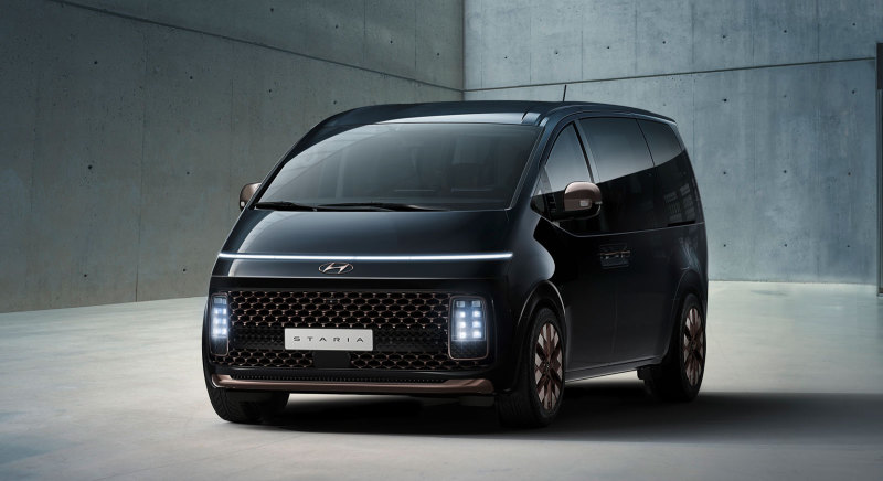 Внешний вид Hyundai Staria больше напоминает концепт-кар, у автомобиля большая площадь остекления, обтекаемый силуэт и необычные дизайнерские решения. В передней части по всей ширине расположена полоска ходовых огней.
