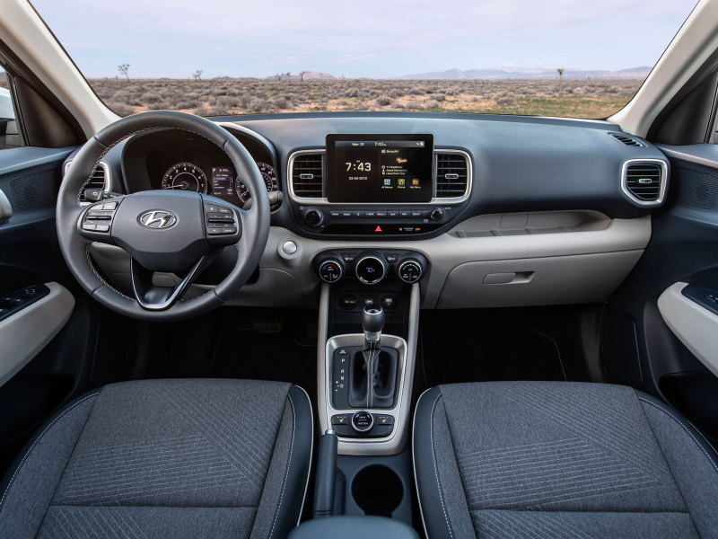 Hyundai Venue заявлен только с передним приводом и бензиновым 1,6-литровым двигателем, мощность которого пока не сообщается, в сочетании с механической коробкой передач или вариатором.