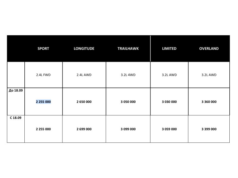 Модель будет доступна на нашем рынке в пяти комплектациях: Sport, Longitude, Limited, Overland и Trailhawk, последняя версия предназначена для любителей бездорожья и появится в будущем году.