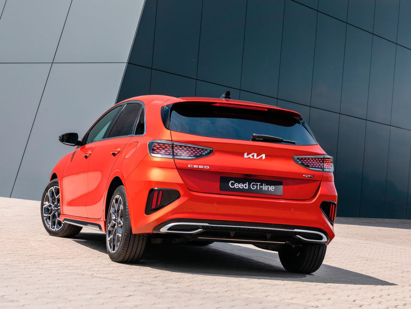 Модели Kia Ceed в исполнениях GT-Line и GT имеют накладки на бамперах и порогах, в хэтчбеках этих версий задние фонари получили матричную структуру.