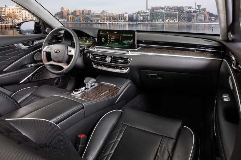 KIA K900 представлен в трёх уровнях комплектации – Luxe, Prestige и Premium. Автомобили с двигателем V8 5,0 GDI будут при этом предлагаться исключительно в максимальной комплектации Premium. В независимости от выбранной версии интерьер К900 украшают стрелочные часы от швейцарского производителя Maurice Lacroix.