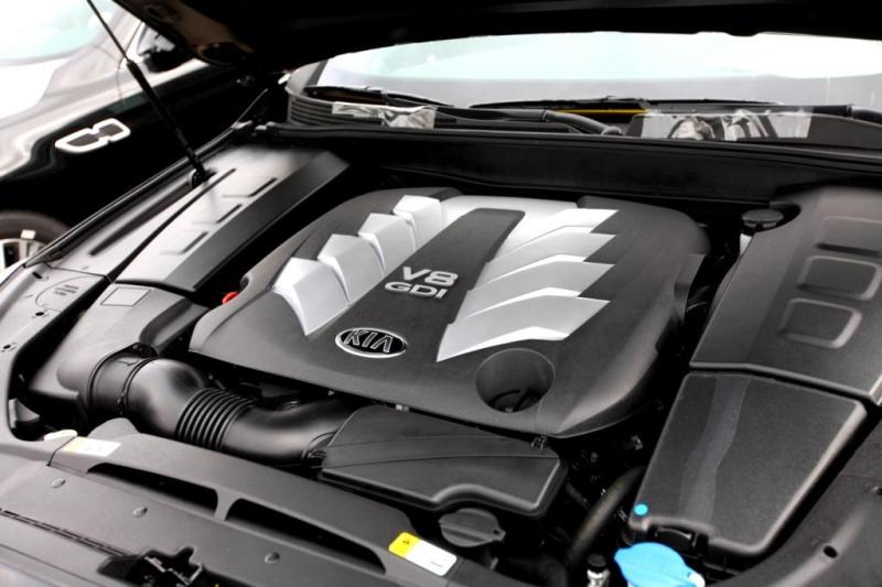 Восьмицилиндровый бензиновый мотор рабочим объемом 5.0 литров, развивающий мощность 424 л. с., дополнительно подчеркивает флагманское положение KIA Quoris в модельной линейке марки.