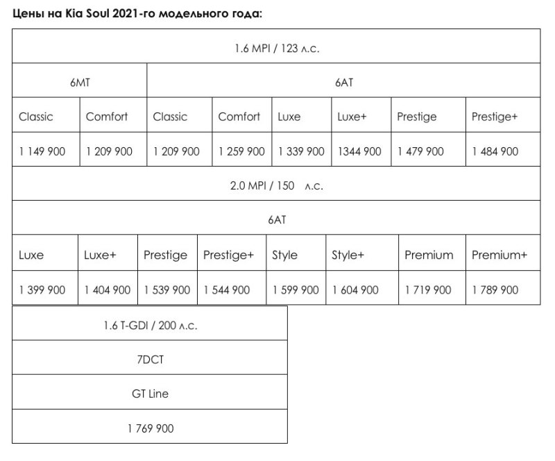 KIA Soul 2021 модельного года получил обновлённые комплектации