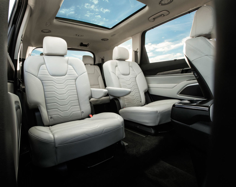 * Система мониторинга движения пассажиров второго и третьего рядов Rear Occupant Alert: при помощи ультразвуковых датчиков осуществляется мониторинг движения детей или домашних животных на втором или третьем ряду. Система активируется при закрытых и заблокированных дверях. При необходимости происходит звуковое оповещение водителя.