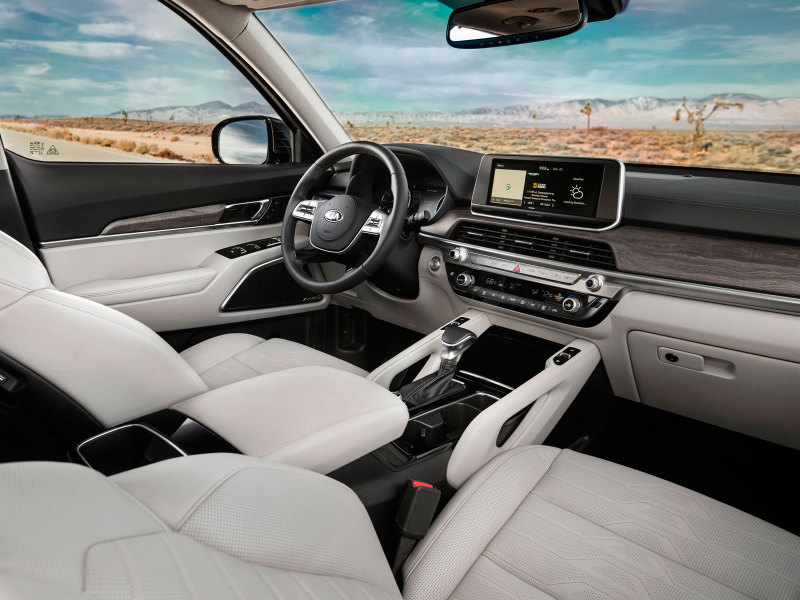 Внедорожник имеет просторный салон в три ряда сидей и способен вместить восемь человек. Под капотом бензиновый 3,8-литровый двигатель V6 GDI семейства Lambda II с непосредственным впрыском топлива мощностью 291 л.с. при 6000 об/мин и крутящим моментом 401 Нм при 5200 об/мин. "КИА Теллюрайд" оборудуется 8-ступенчатым "автоматом" и активной системой подключаемого полного привода, при этом будут доступны и упрощённые версии с передним приводом.