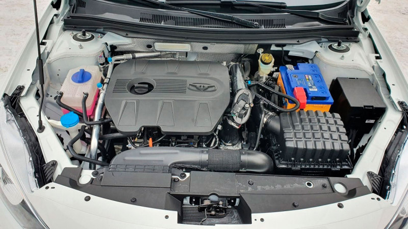 Издание "За рулём" испытало новинку. Под капотом машины известный бензиновый мотор Chery Acteco с чугунным блоком и цепным приводом, он работает в паре с проверенным вариатором CVT9.