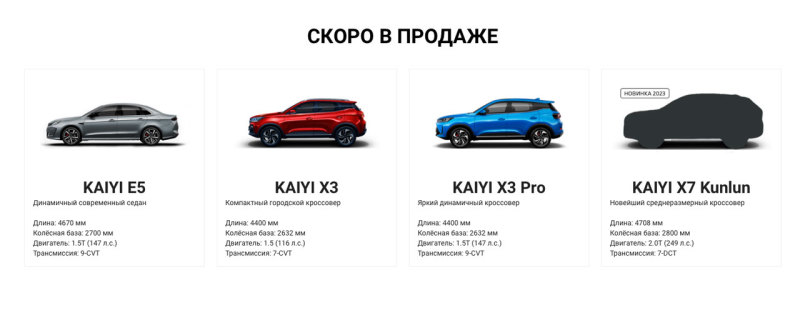 На нём появилась информация о моделях для нашего рынка. В этом году на заводе "Автотор" начнут собирать кроссоверы Kaiyi X3 и X7 Kunlun, которые дополнят седан Kaiyi E5, серийная сборка которого началась недавно.