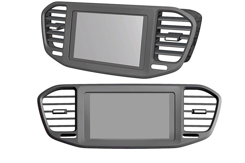 Такой вариант получат дорогие комплектации, более дешёвые будут довольствоваться горизонтальным дисплеем более скромного размера, расположенного между решётками вентиляции.