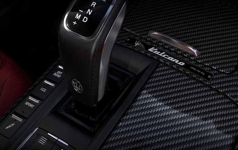 Отделка интерьера выполнена элементами из высокоглянцевого карбона, который также используется в оформлении подрулевых "лепестков" переключения передач и вставками на спортивном рулевом колесе с электрорегулировками. На хромированном алюминиевом шильдике на центральном тоннеле рядом с трезубцем размещаются новый логотип Vulcano и надпись "one of 150" ("один из 150").