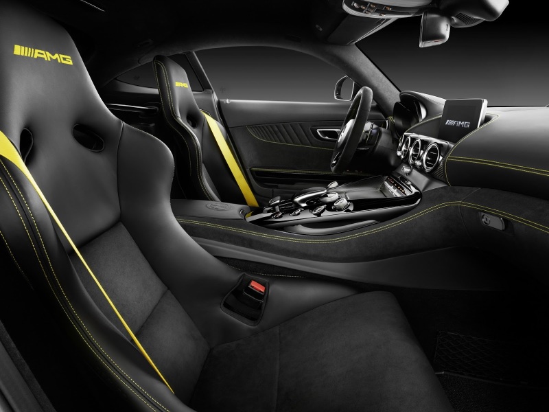 От модели AMG GT новинка отличается зеленой окраской кузова, более агрессивным аэродинамическим обвесом, заниженным дорожным просветом, уменьшенной массой и черными 20-дюймовыми колесными дисками с 10 спицами.