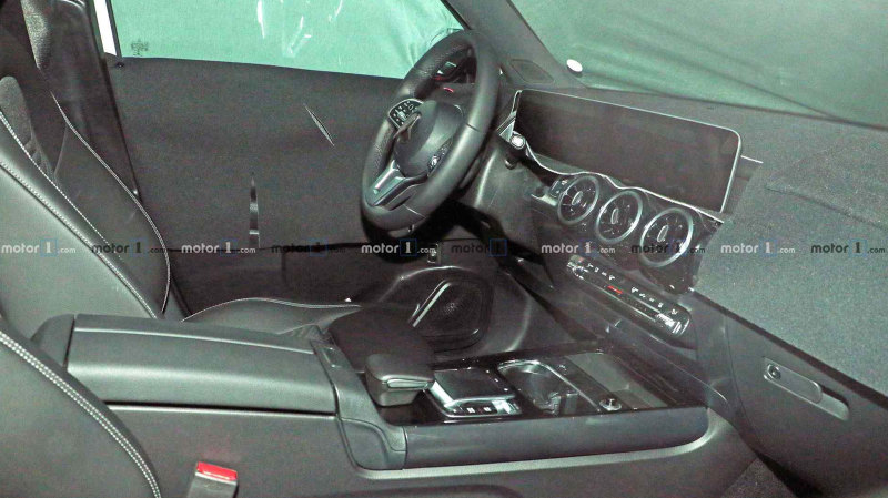 Судя по свежим фото, салон Mercedes-Benz GLB по стилистике похож на соплатформенный A-Class: передняя панель с характерными дефлекторами вентиляции, визуально объединённые цифровая приборная панель и сенсорный экран бортовой мультимедийной системы, а также центральная консоль.