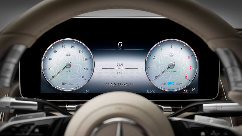 Салон Mercedes-Maybach S-Класса серийно получил центральный OLED-дисплей с диагональю 12,8 дюйма в качестве высокотехнологичного центра управления. В качестве опции для водителя предлагается 3D-дисплей с диагональю 12,3-дюйма с трёхмерным отображением других участников дорожного движения, а также эффектами глубины пространства и светотеневыми эффектами.