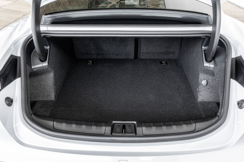 В Taycan доступны два багажника: передний объёмом 81 литр, задний – 366 литров. В качестве функций на заказ можно установить интеллектуальную систему оптимизации запаса хода, усилитель рулевого управления и систему активного ведения по полосе.
