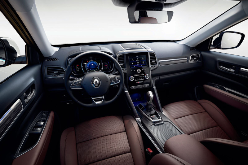 В салоне "Рено Колеос" 2019 модернизированная мультимедийная система и более качественные материалы отделки. Набор электронных ассистентов для водителя дополнен системой автоматического экстренного торможения, которая умеет распознавать пешеходов.