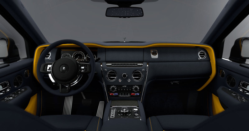 Для отделки салона каждого Cullinan выбран индивидуальный контрастный оттенок, отражающий уникальность возвышенностей. В салоне имеются декоративные накладки на порогах с иллюминацией, на которых выгравировано имя коллекции, а также название и высота горной вершины, которой посвящён автомобиль: Elbrus 5642 m, Krasnaya Polyana 2500 m, Klyuchevskaya Sopka 4750 m и Golden Mountains 4506 m.