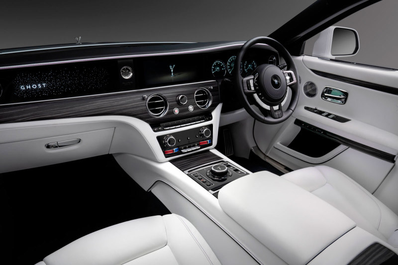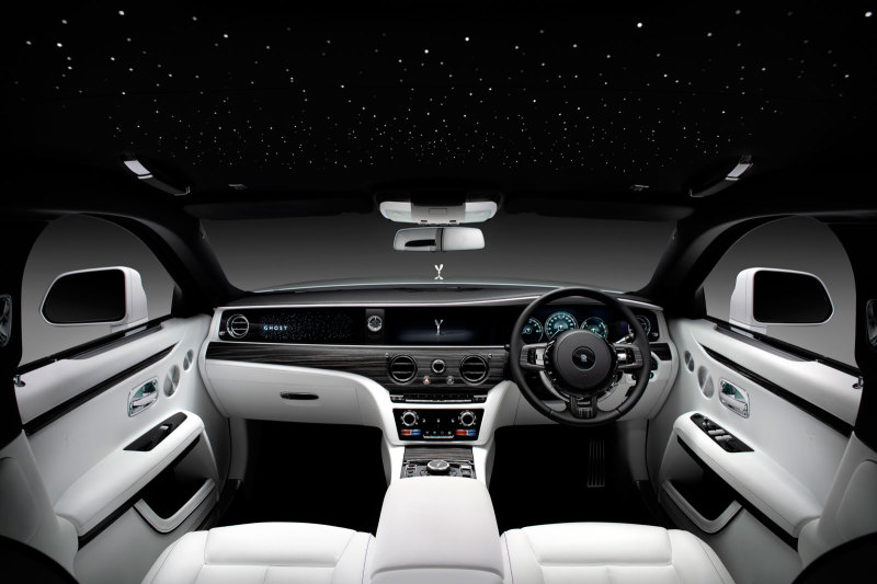 В салоне второго поколения Rolls-Royce Ghost появились виртуальные приборы и новая "фишка" в виде опциональной точечной подсветки передней панели, которая работает на базе встроенных 860 диодов, создающих звёздный эффект. Кроме этого производитель заявил, что значительно улучшил шумоизоляцию салона.