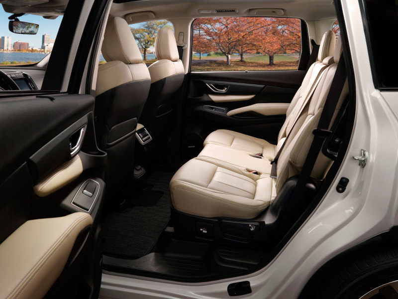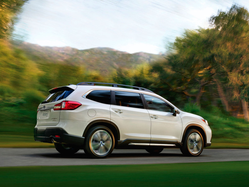 Subaru Ascent появился в 2018 году и сменил в модельном ряду бывшего флагмана Subaru B9 Tribeca. Новый кроссовер имеет салон с тремя рядами сидений на семь или восемь посадочных мест, он оснащён бензиновым горизонтально-оппозитным турбированным двигателем объёмом 2,4 литра и мощностью в 272 л.с., в сочетании с вариатором CVT и фирменной системой симметричного полного привода.