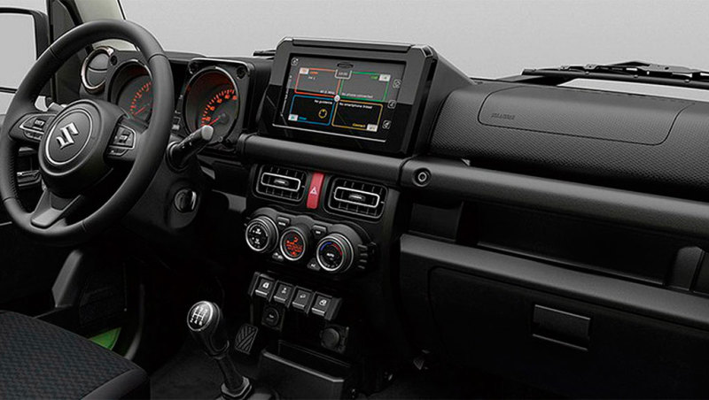 В списке оснащения Suzuki Jimny 2019 модельного года значатся: передние и боковые подушки безопасности, мультифункциональный руль, круиз-контроль, кондиционер, запуск двигателя кнопкой. Впервые на модели будет устанавливаться система автоматического экстренного торможения Safety Support, которая распознает препятствия впереди и производит автоматическое торможение в экстренных случаях. Она работает в диапазоне от 5 до 100 км/ч, при этом пешеходы распознаются в диапазоне 5-60 км/ч.